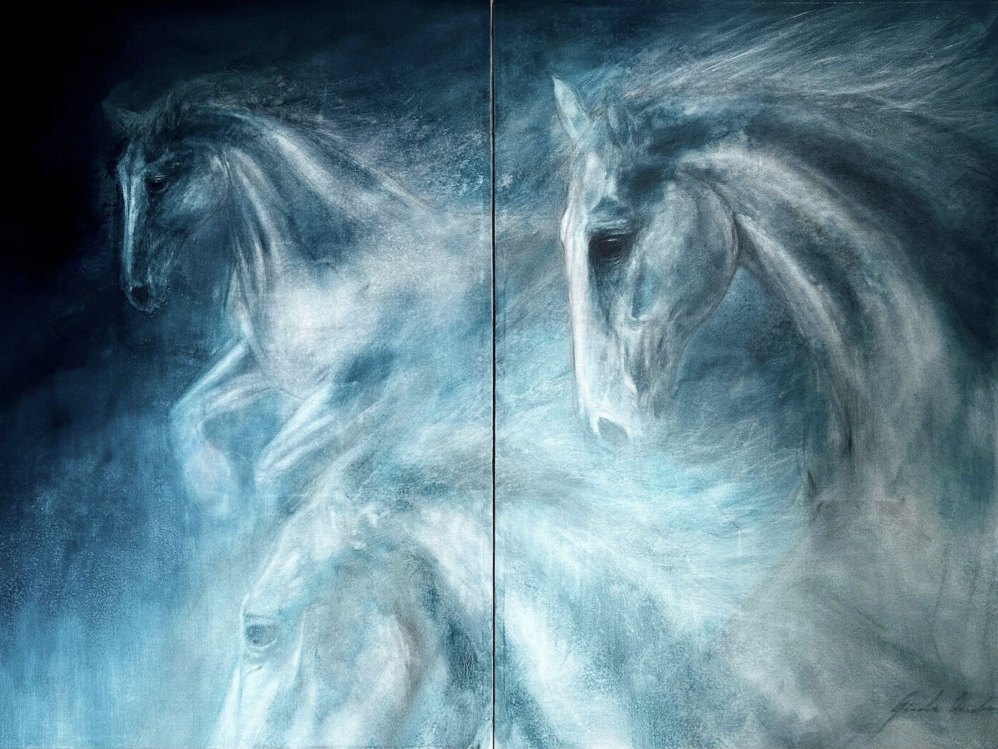 Waves, Horses, Wind 2024, Oil on canvas 200 x 150 cm © Gioele Ossola 2025 . All Rights Reserved Category: Horses Date: 4 October 2024 Share: